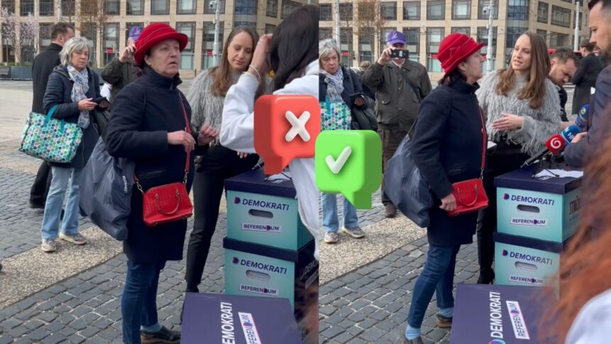 Napätá atmosféra pri odovzdávaní podpisov za referendum pred Prezidentským palácom dostala nečakaný zvrat. Tlačovú konferenciu strany Demokrati, na ktorej Jaroslav Naď hovoril o viac než 384-tisíc podpisoch pre referendum, narušila staršia žena.